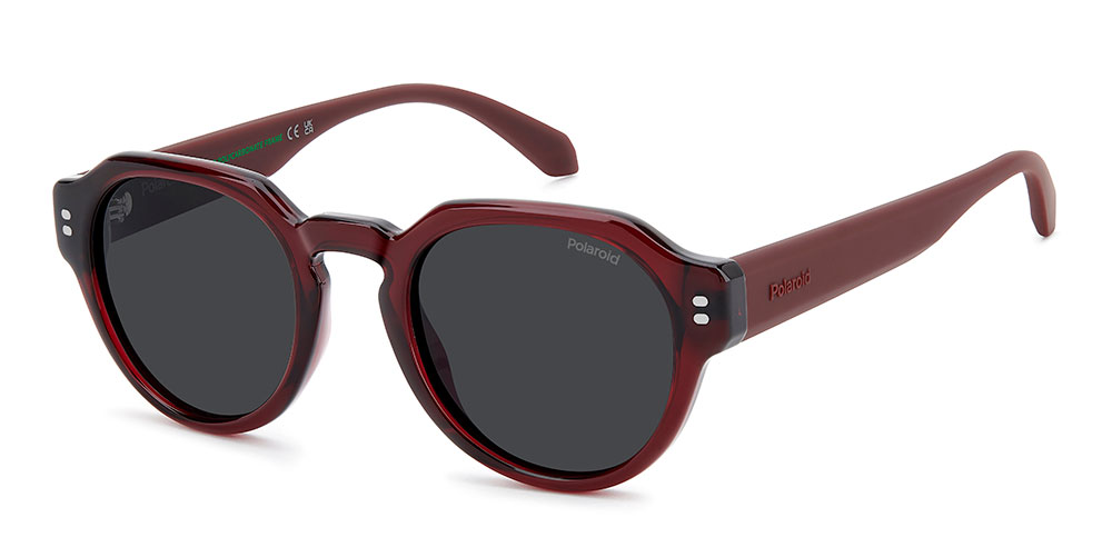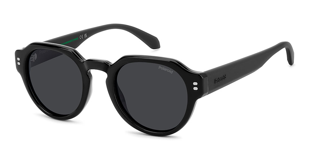These sunglasses by Polaroid Eyewear are iconic and inspired by pop looks. The geometric pantos front with a keyhole bridge is instantly recognizable. The bold proportions of the structure are surprisingly lightweight, designed for effortless style. A soft-touch finish makes the beveled temples a delight to wear, decorated by a raised logo on the outside. For added versatility, this style can even hold prescription sun lenses.