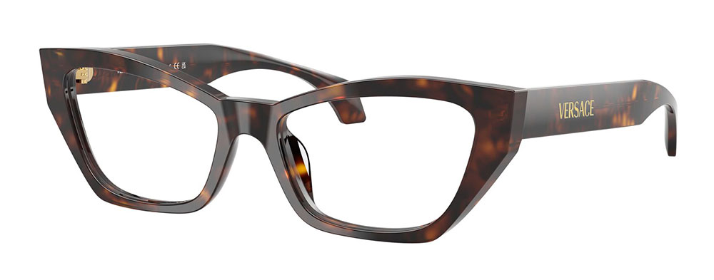 VERSACE 3373U A geometric cat-eye with a bold Versace look. Crafted with acetate and featuring minimal decor, these frames have a sleek and feminine aesthetic. Complete with the Versace logo on the temple for an understated, yet empowered style. Date: June 25, 2025 Category: Eyeglasses Share: